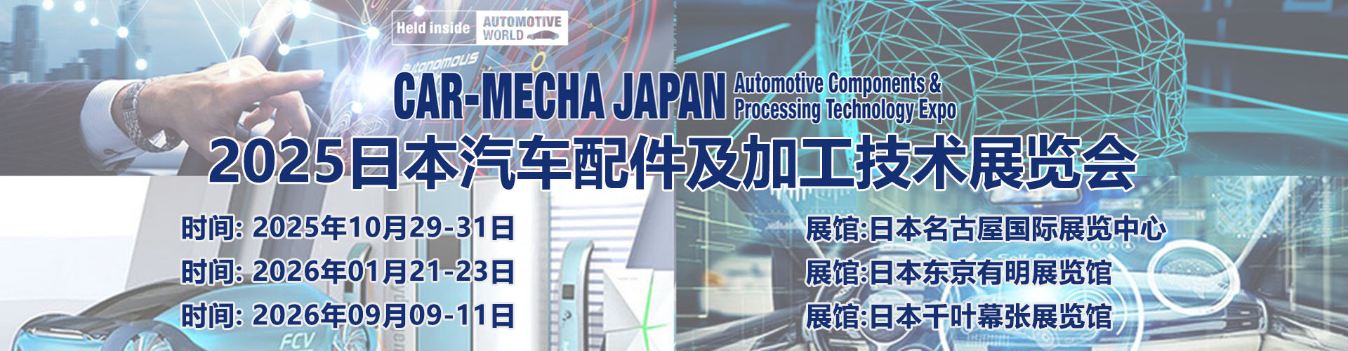 日本国际汽车组件和加工技术展览会(CAR-MECHA JAPAN)是日本专注于汽车配件加工技术行业展览会。可展出范围压力加工、压铸/铸造、切割/磨削、钣金加工、树脂工艺、加工设备制造商、加工设备、模具、承包商等。